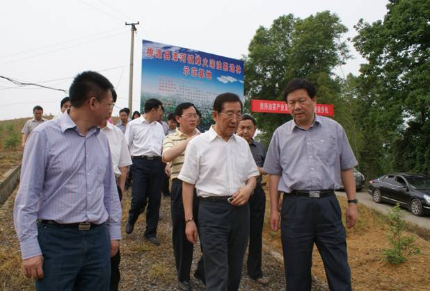 5月11日,中央委员、全国绿化委员会副主任、全国政协环资委副主任、原国家林业局局长贾治邦同志一行,在湖南省林业厅邓三龙厅长的陪同下,来常考察油茶产业发展情况。