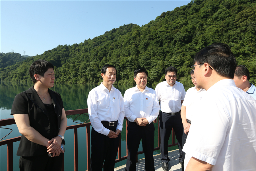2019年6月3日,省委副书记、省长许达哲在郴州市东江湖察看水质水情,了解东江湖水资源保护、小东江冷水资源利用等情况。