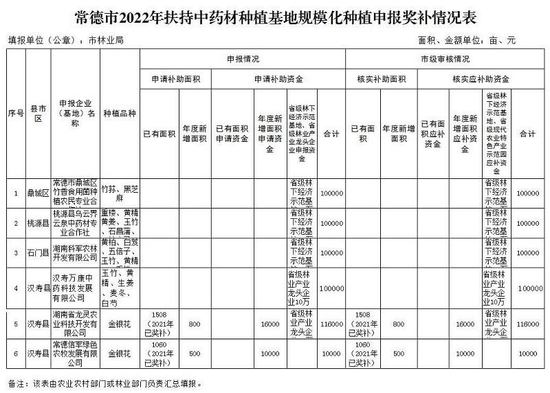 根据《常德市扶持中药村种植基地建设政策实施细则》的通知(常发改农经[2021]114号),常德市发展和改革委员会、常德市财政局、常德市市场监督管理局、常德市林业局联合对全市申报扶持中药材种植基地专项资金的单位进行验收,验收采取审核资料方式,现将验收情况公示如下:
