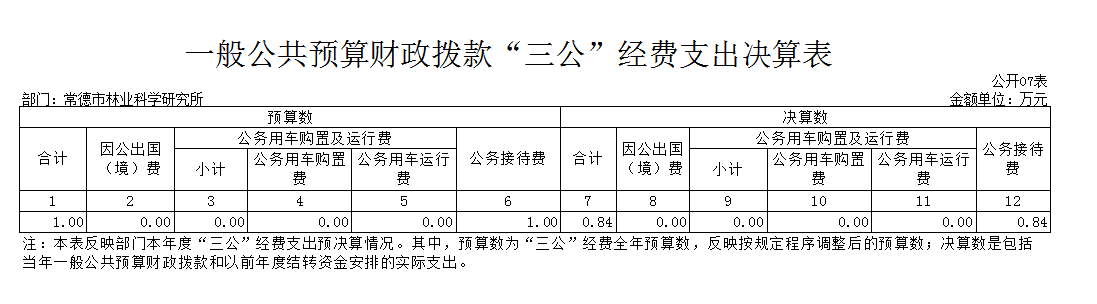 常德市林业科学研究所2020年一般公共预算财政拨款“三公”经费支出决算表