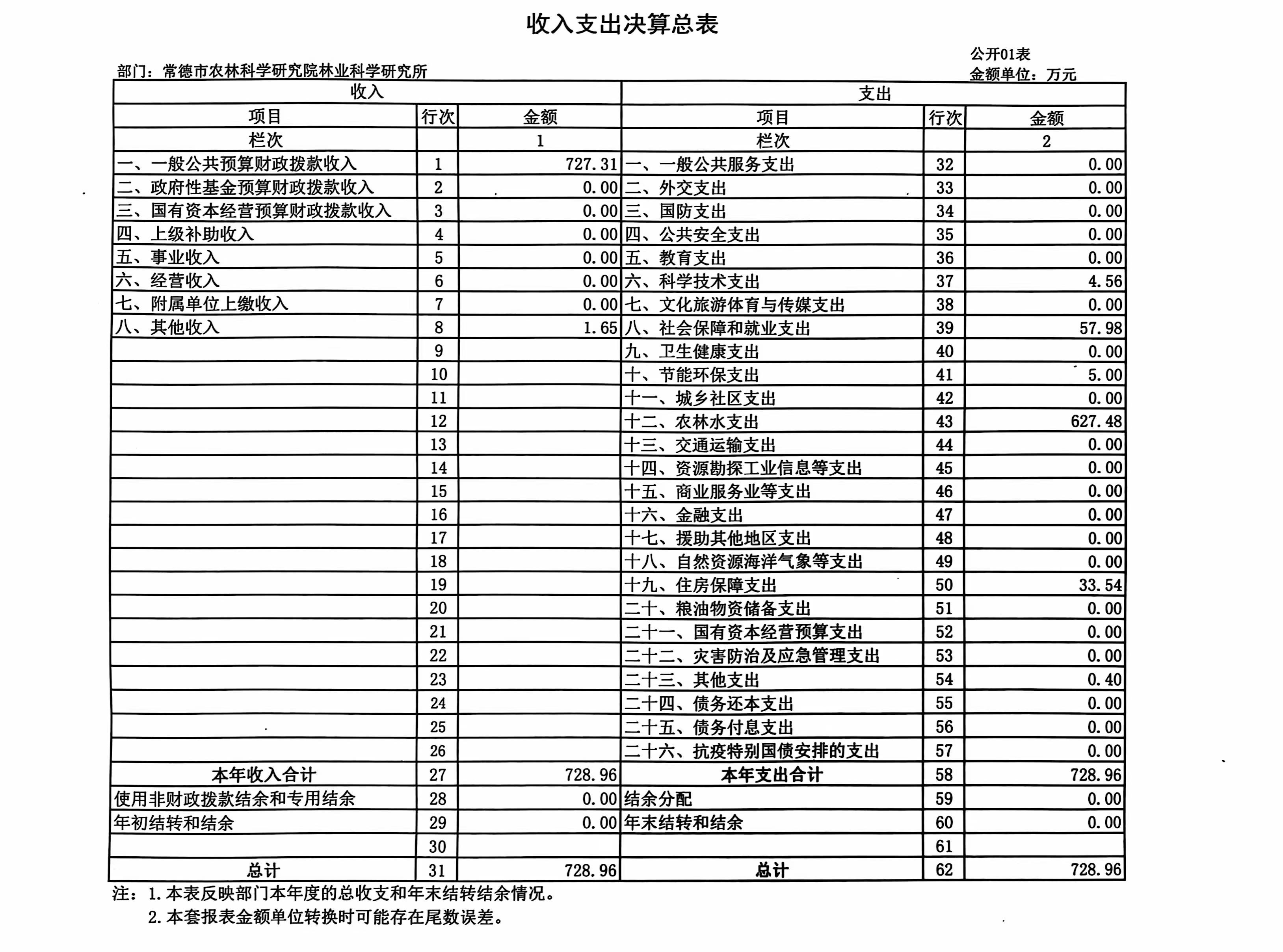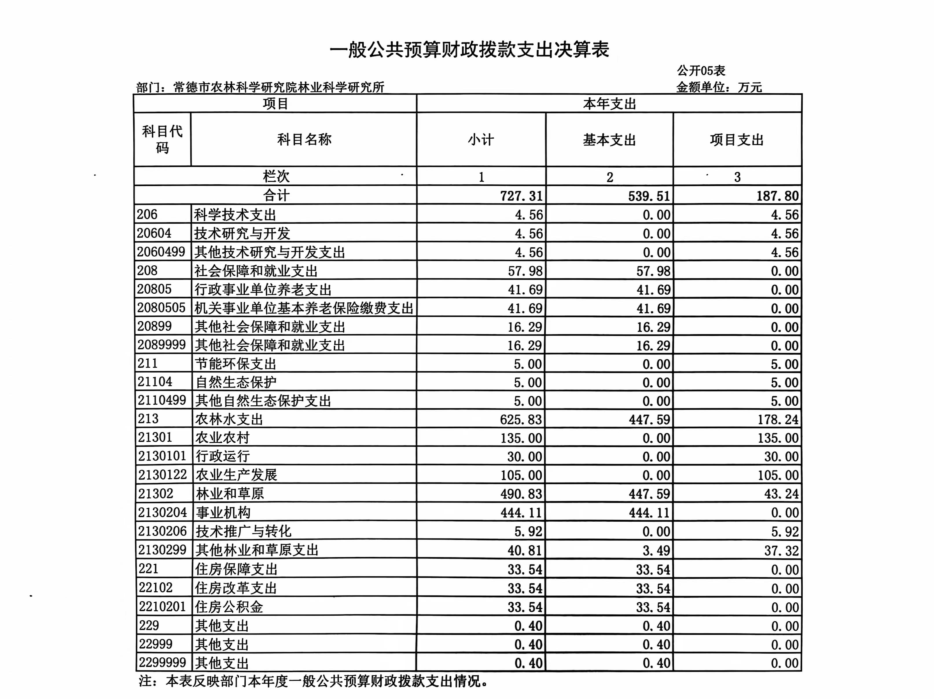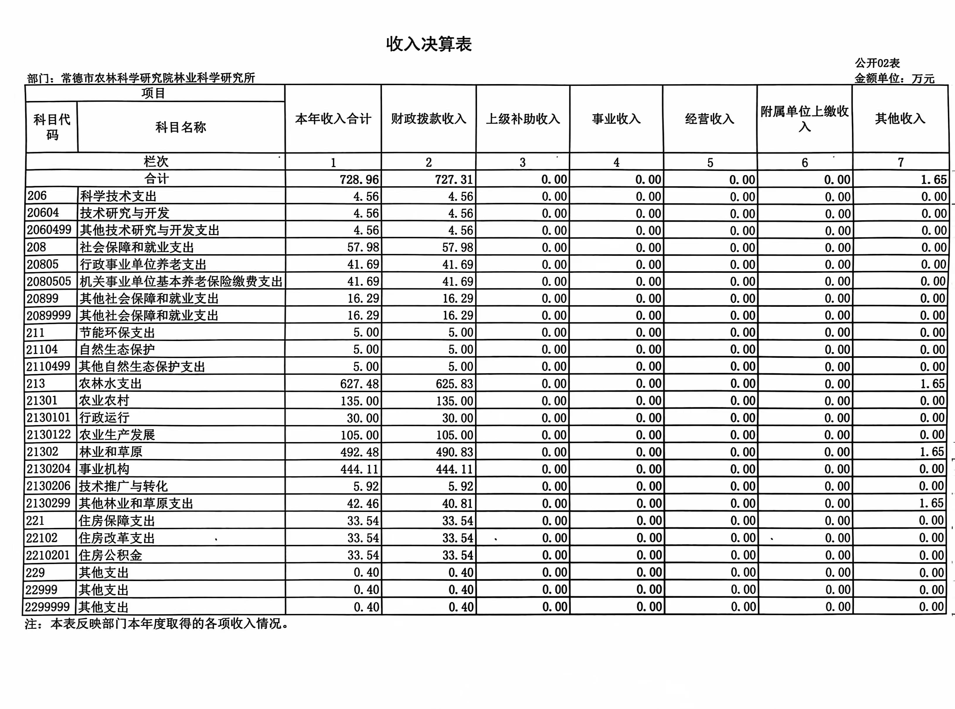 (二)决算单位构成。本单位无所属二、三级预算单位,故2023年部门决算编制范围的为常德市林业科学研究所单位本级。