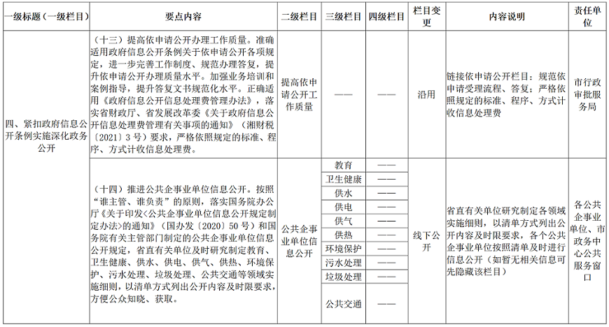 常德市落实《湖南省2021年政务公开工作要点》责任分解表